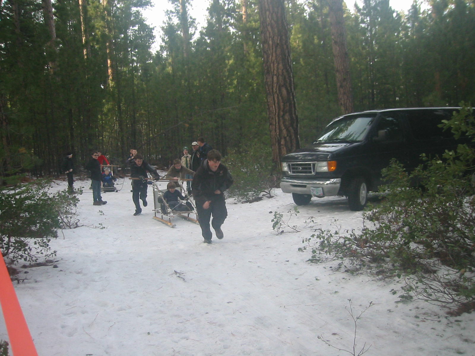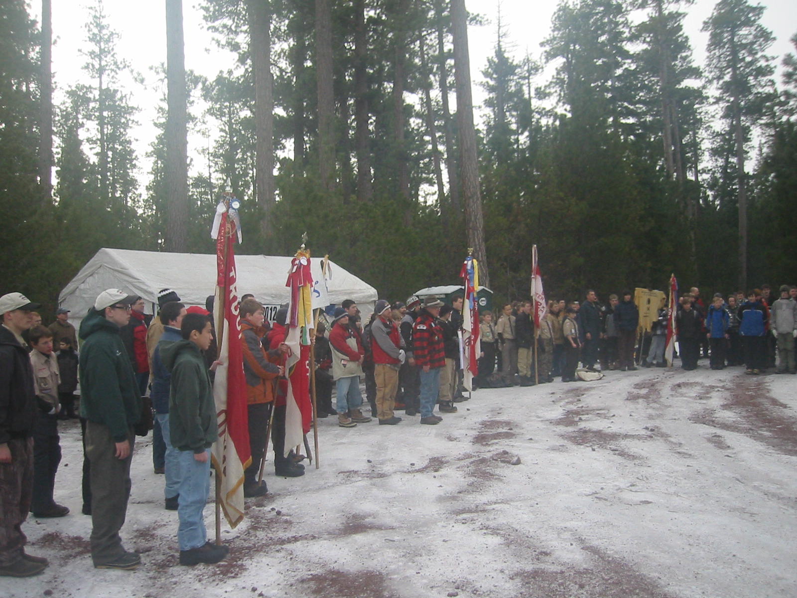 January 29-31,2012 Freeze-o-ree. Troop 139 hosted the annual Fremont District Freeze-o-ree (Winter Camp) at Three Creeks Sno Park. It was attended by over 200 scouts and adult leaders. The theme for the event was the 2012 Winter Games. We provided a decathlon of games consisting of snowshoe races, fire building contest, trivia relay, 5-legged relay, XC ski race, orienteering, geocaching, chili contest, best camp award and the final sled race. Troop 139 constructed a sled from sticks and lashings and finished a respectable 4th place. The event finished off Saturday night with medals given on a podium in front of a bon-fire that anyone would be proud of!