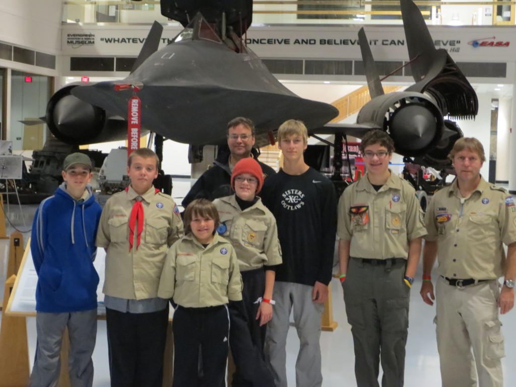 December 2012 Evergreen Aviation and Space Museum. What a great weekend! Saturday consisted of completing the Aviation Merit Badge, followed by a tour of the Evergreen Aviation Museum. The scouts then went to the Wings and Waves indoor water park for a few hours, before returning for a private tour of the Space Museum.